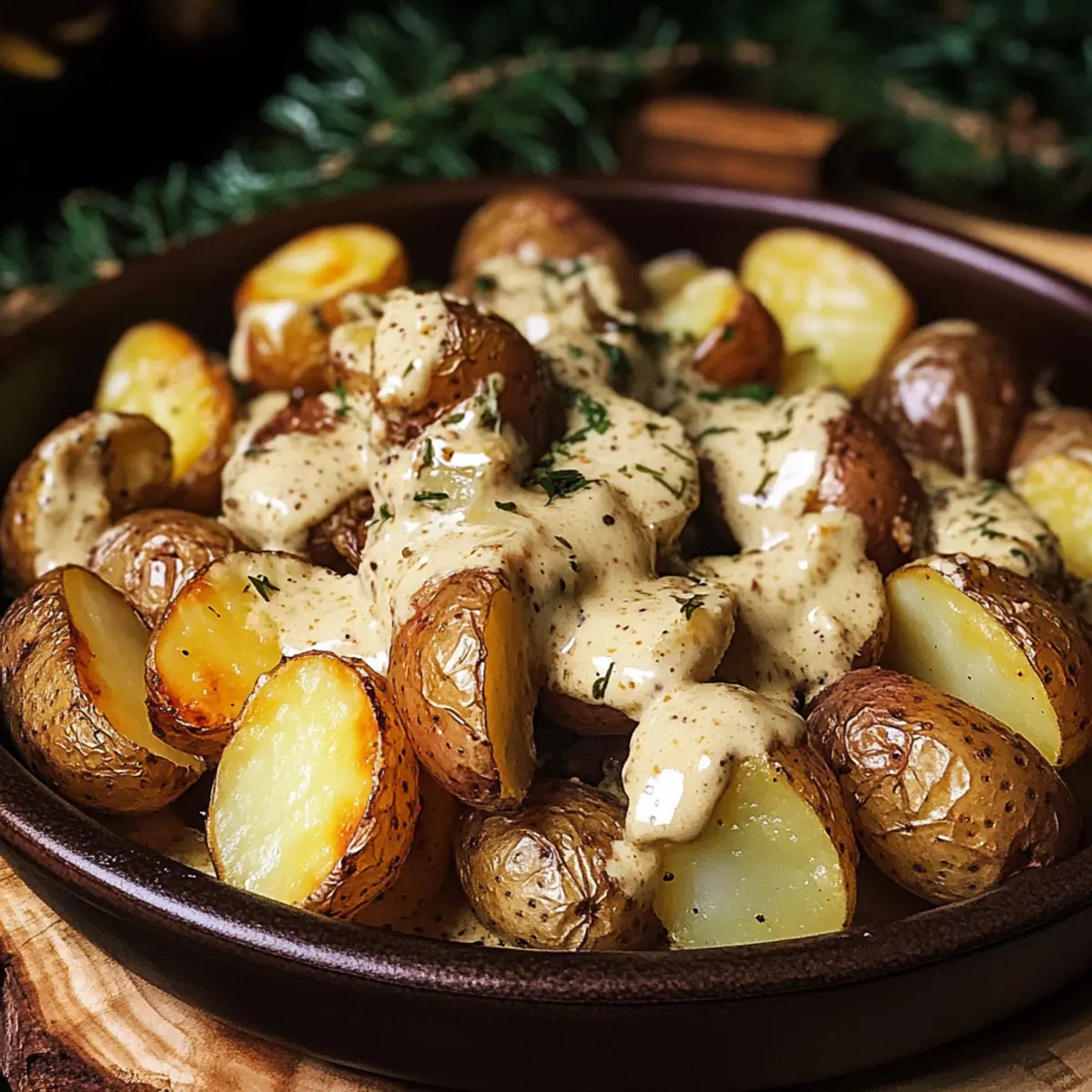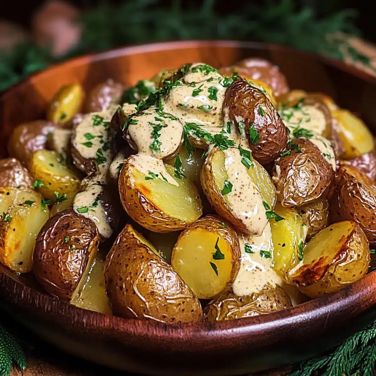 Röstkartoffeln mit cremiger Senfsauce gaumenfreuden