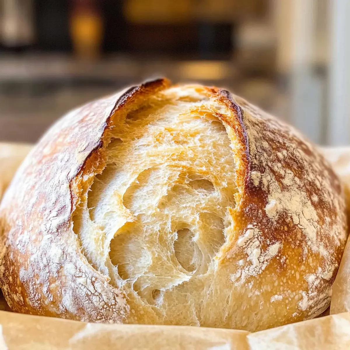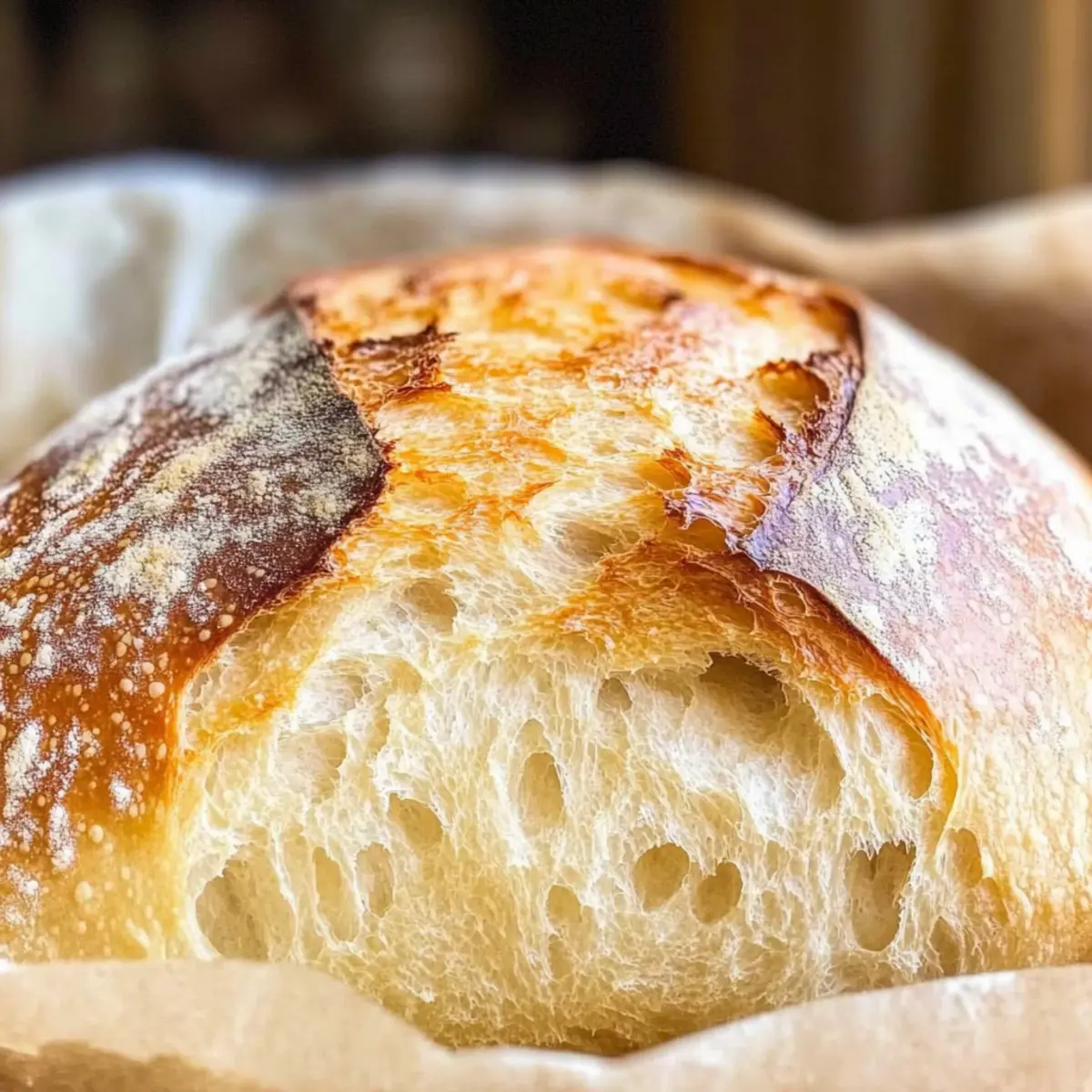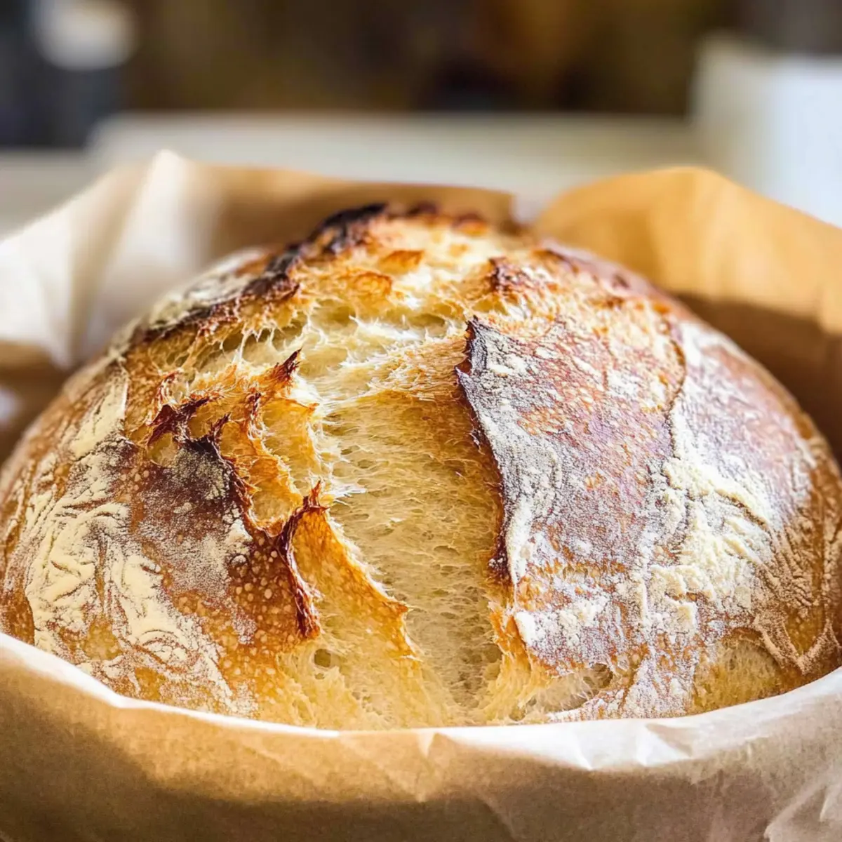 Zimmertemperatur: Bewahre das Brot in einem Papiertüte oder einem Brotkasten auf, um es für bis zu 3 Tage frisch zu halten. So bleibt die Kruste schön knusprig.