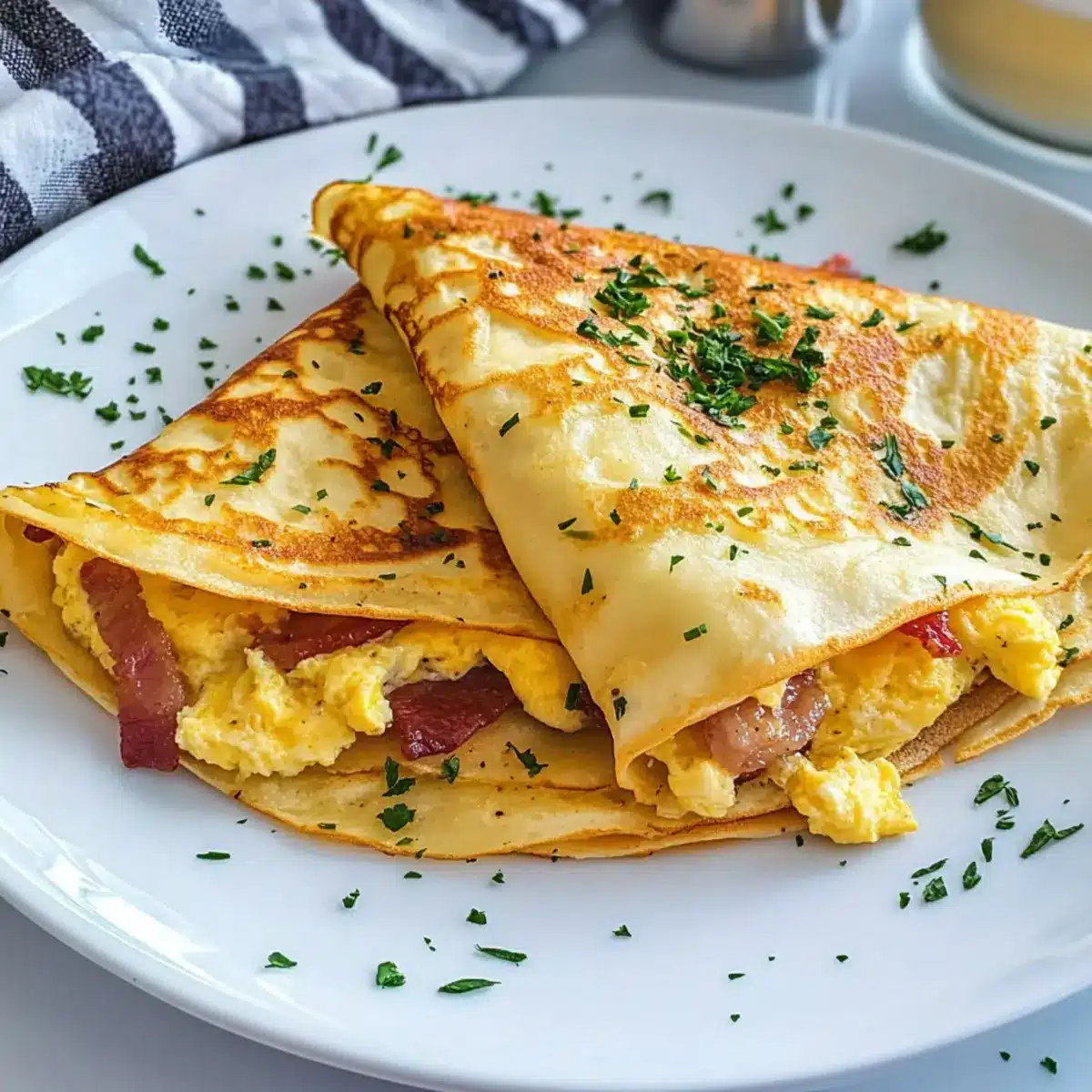 Savory Speck, Ei und Käse Crepes für Frühstücksfreunde