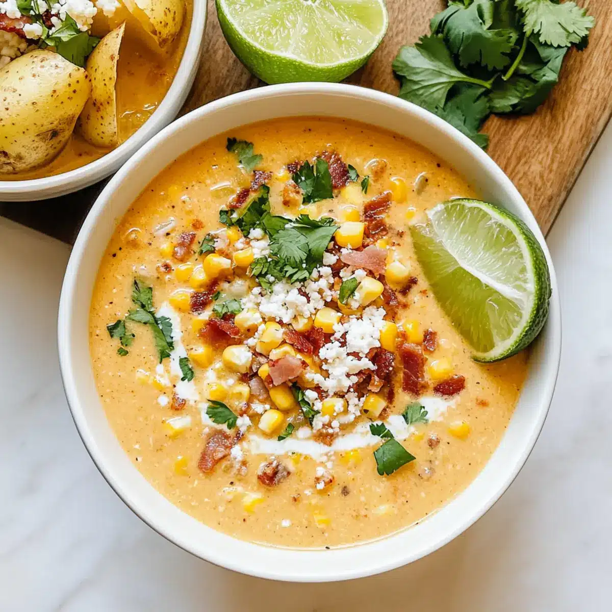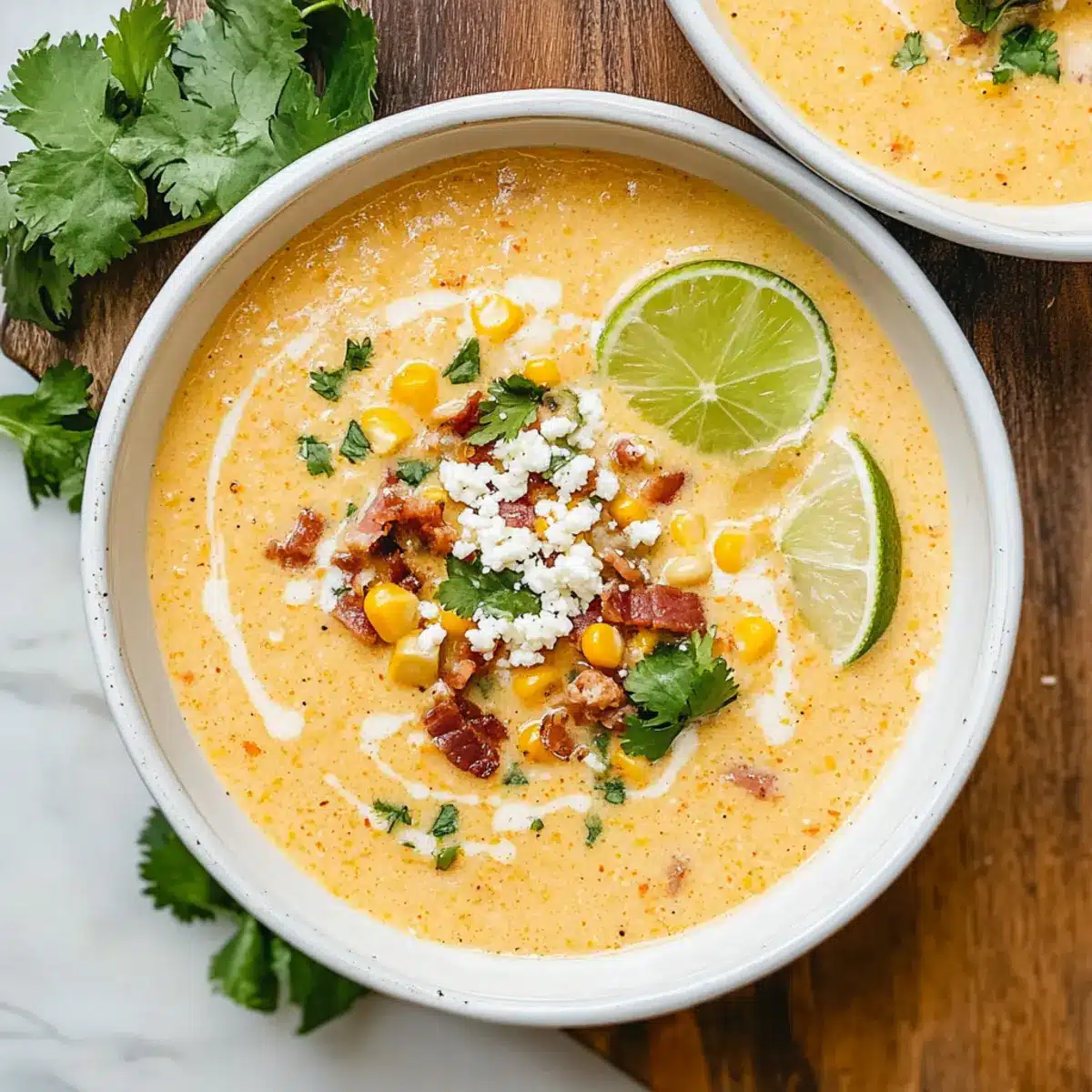 Garnierungen nicht vergessen: Verleihe der Suppe mit frischem Koriander und Limettensaft den letzten Schliff – das hebt den Geschmack der Straßenmais Suppe auf ein ganz neues Niveau!