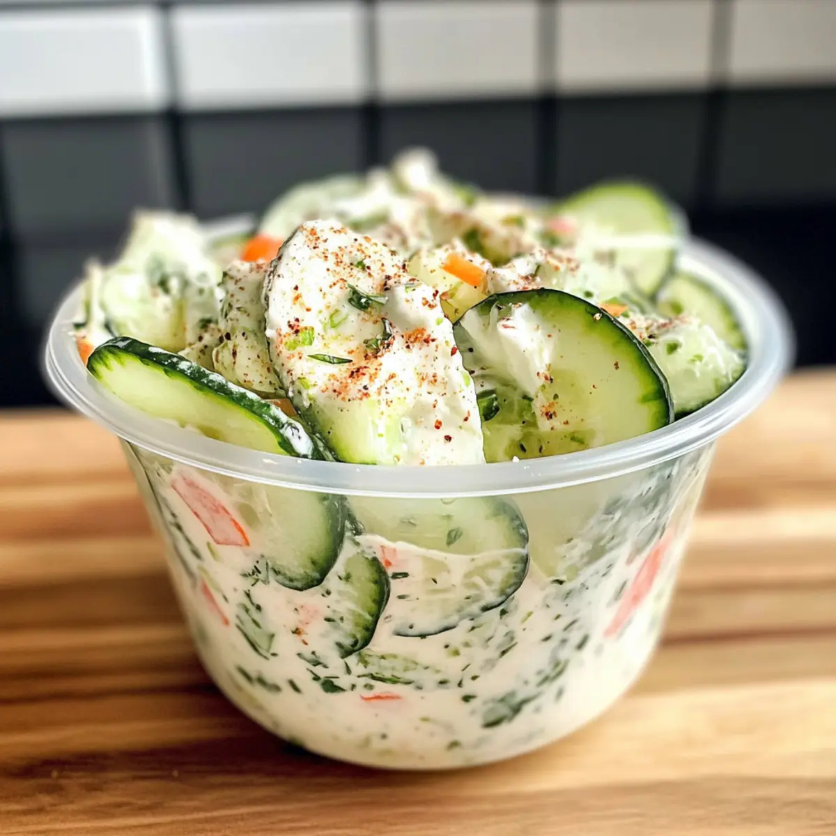 Vegan: Verwende pflanzliche Alternativen wie veganen Frischkäse und Mayo, um einen köstlichen, pflanzlichen Gurkensalat zu zaubern. Dies ist ideal für alle, die tierische Produkte vermeiden möchten.