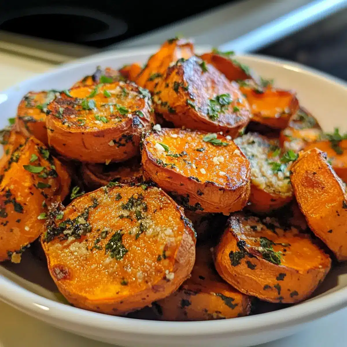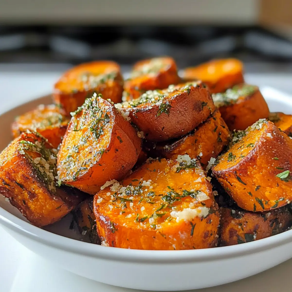Süßkartoffel Bissen mit Parmesan und Kräutern