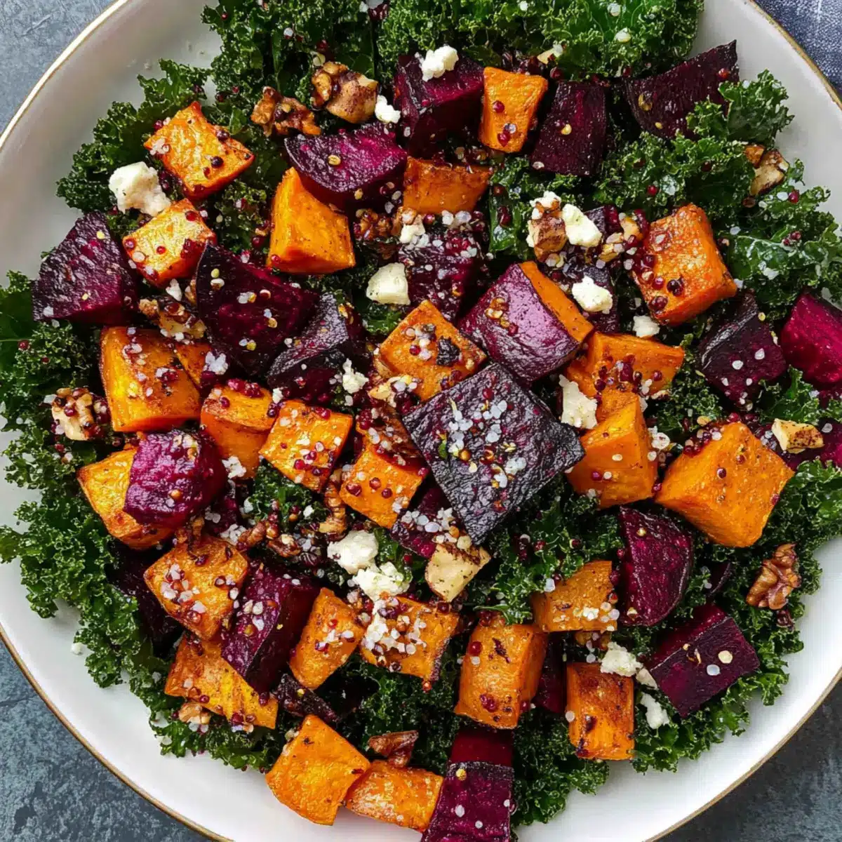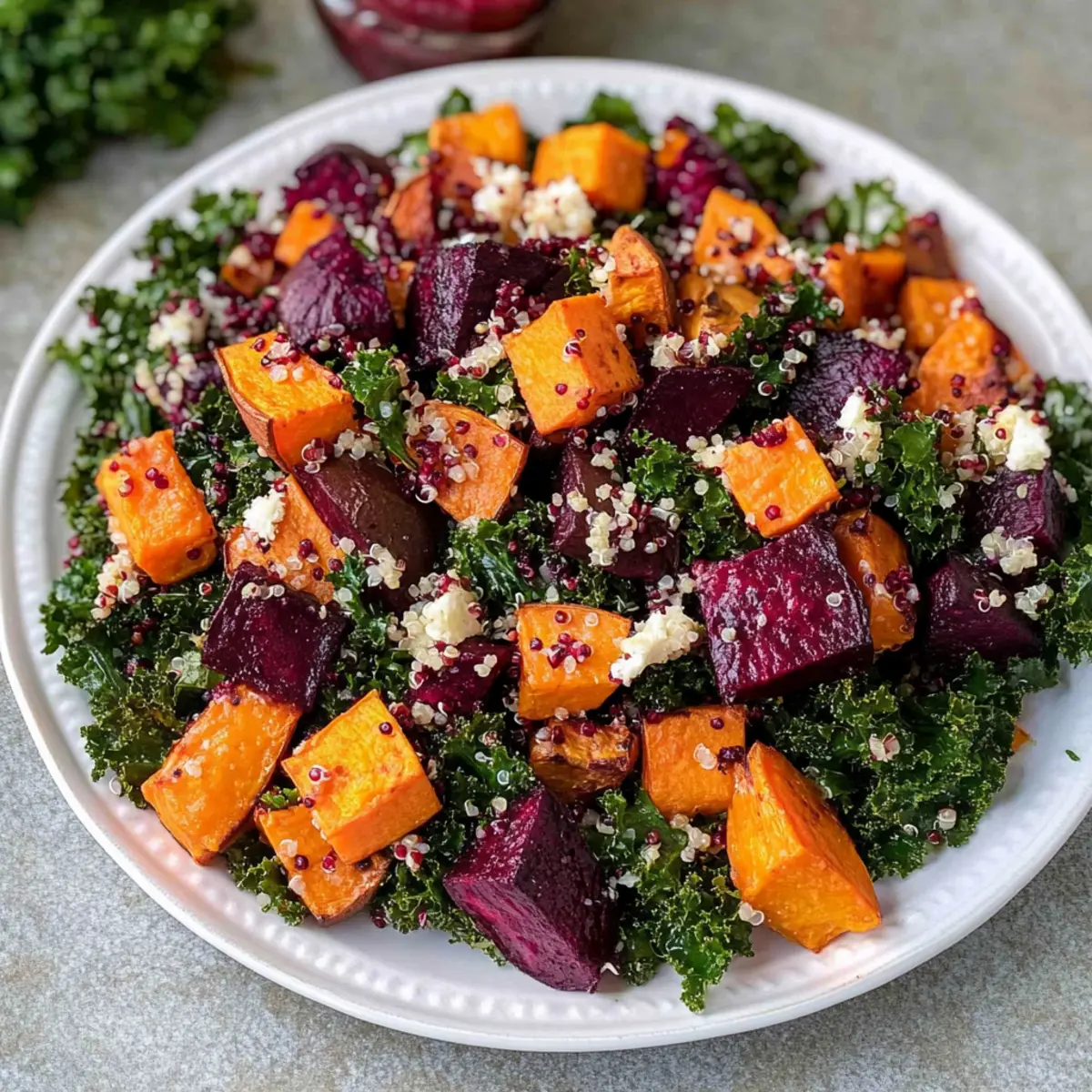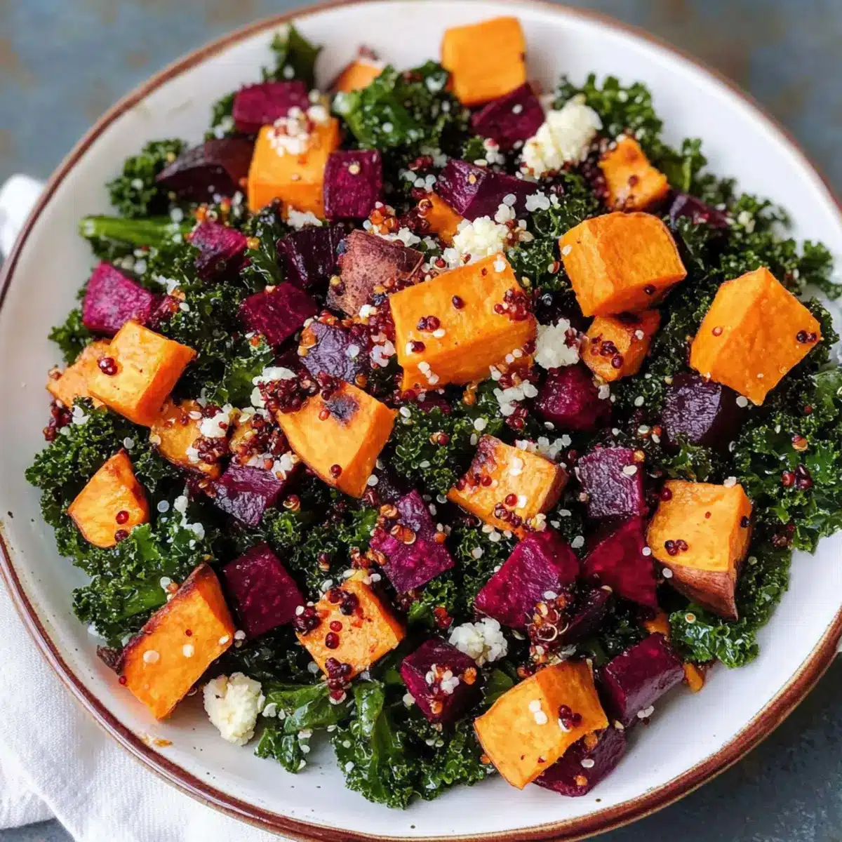 - Saisonale Vielfalt: Tauschen Sie die Rote Beete gegen geröstete Kürbiswürfel aus, um einen tollen Geschmack und eine neue Textur zu erhalten. Kürbis bringt eine eigene Süße, die perfekt harmoniert!