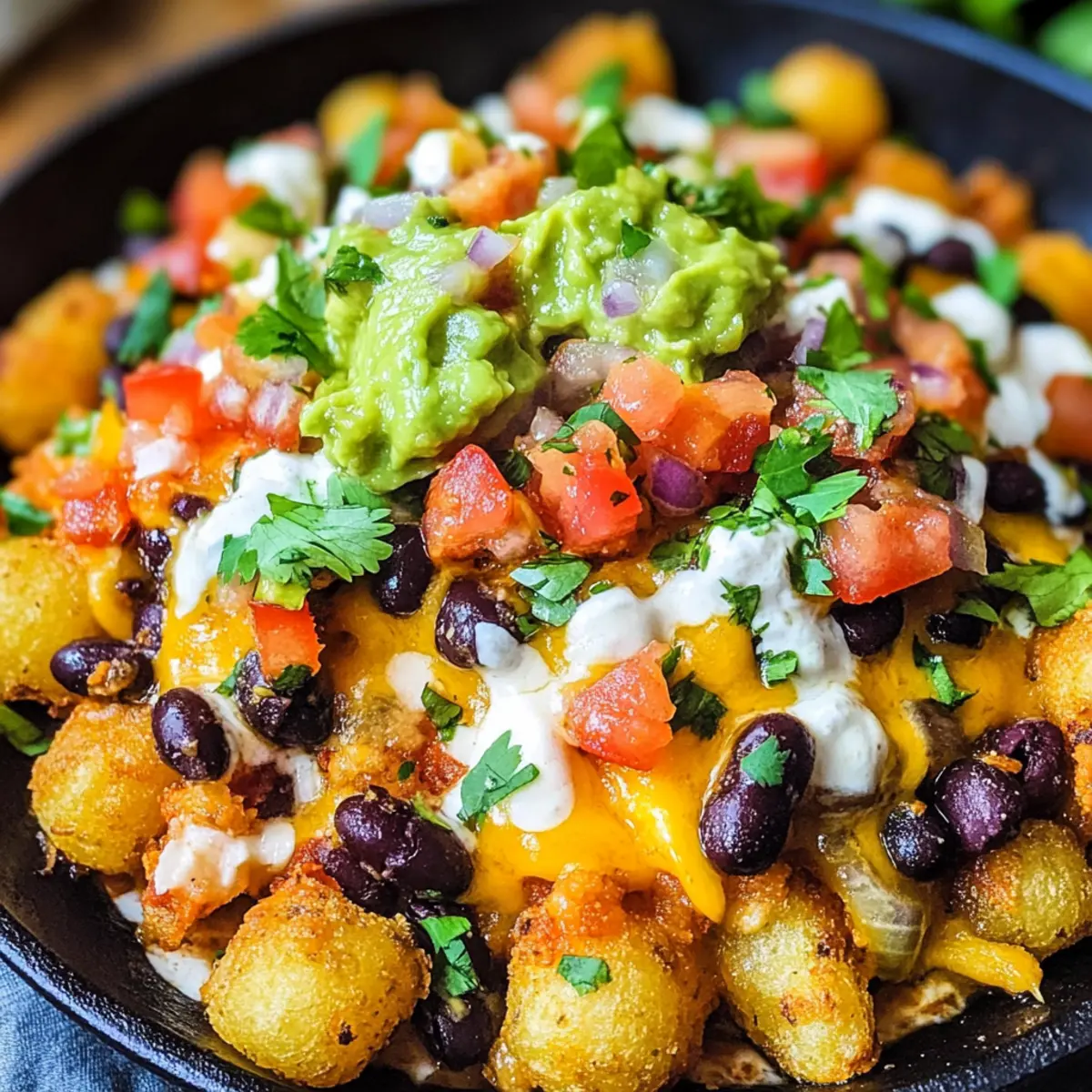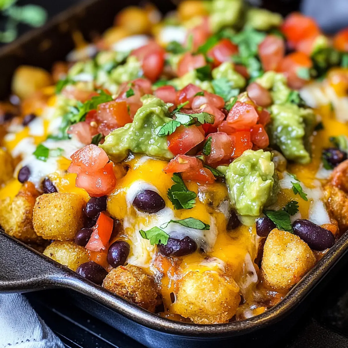 Einzigartige Kombination: Tater Tot Nachos bieten eine aufregende Mischung aus knusprigen, herzhaften Tater Tots und den klassischen Aromen von Nachos.