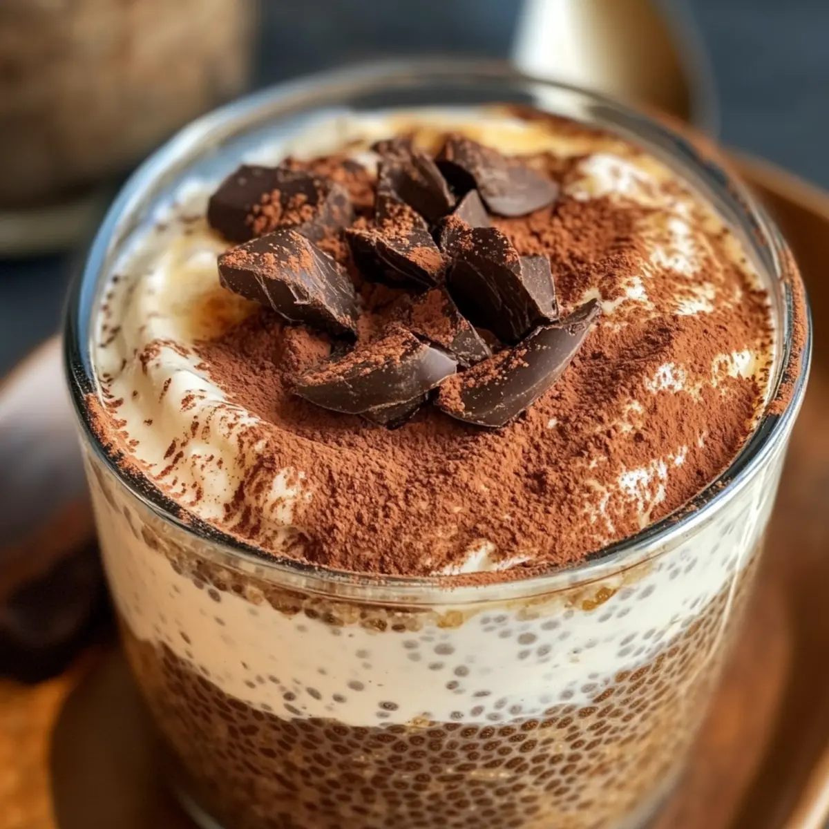Gesunde Wahl: Mit über 20g Protein pro Portion ist dieser Tiramisu Chia Pudding ideal für alle, die auf eine ausgewogene Ernährung achten.