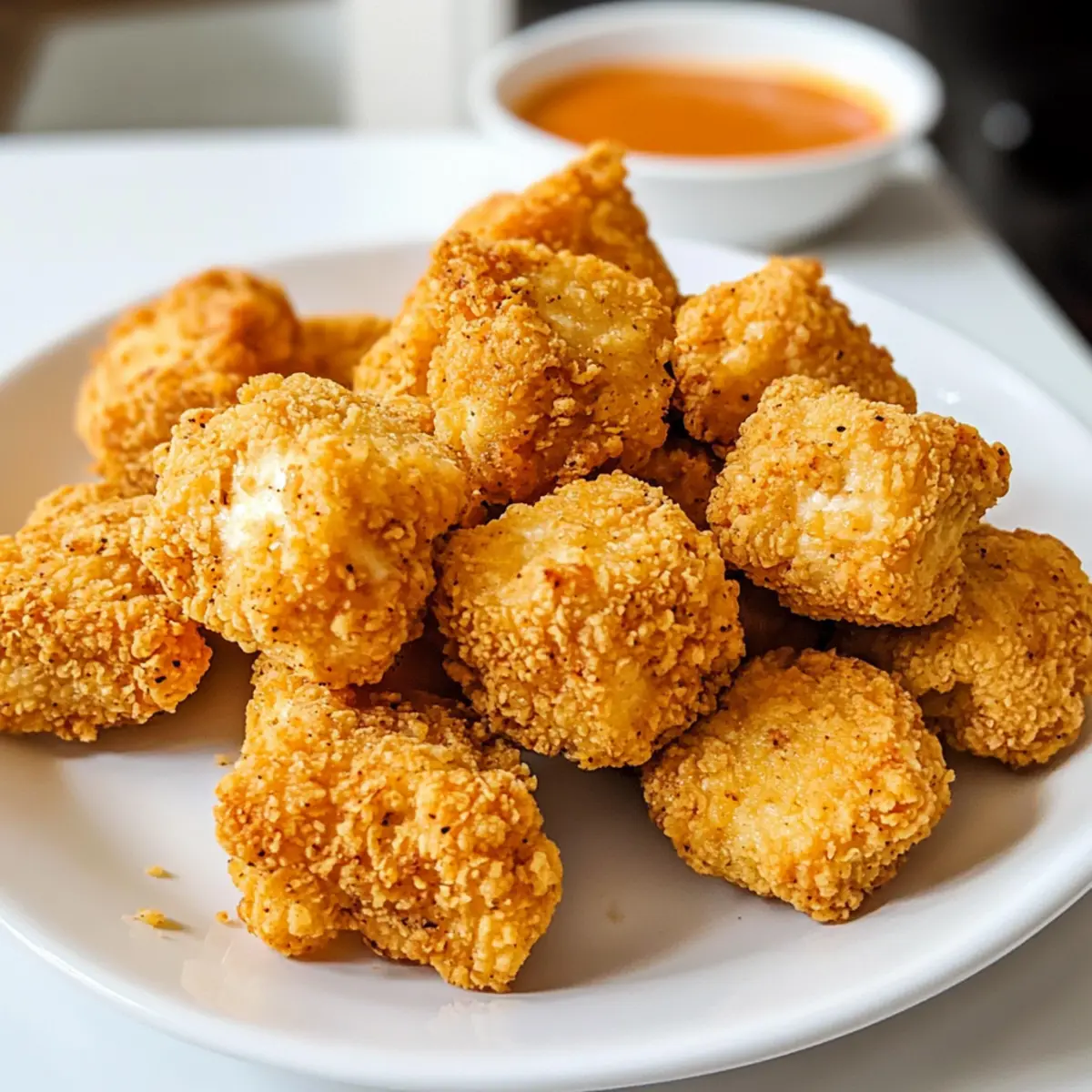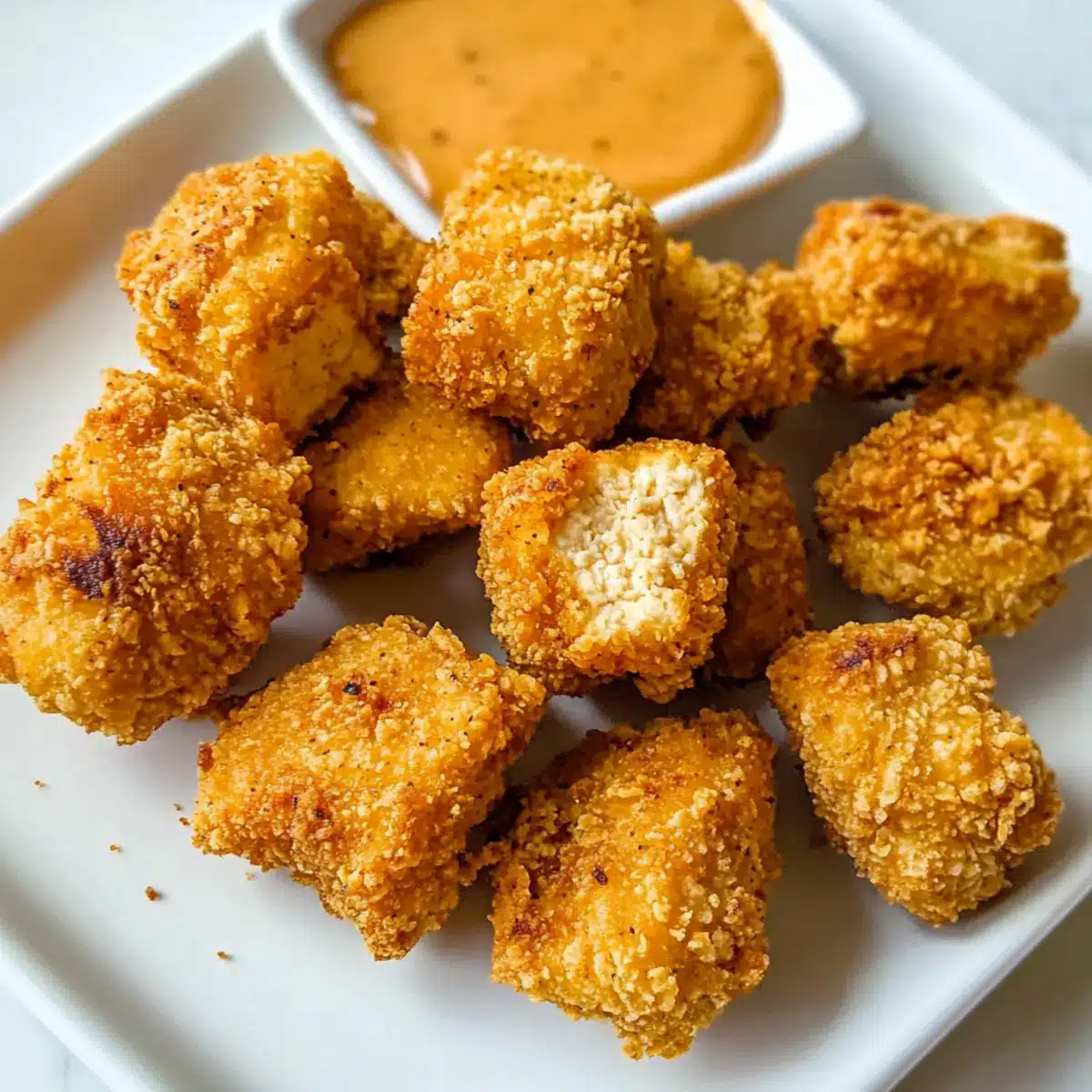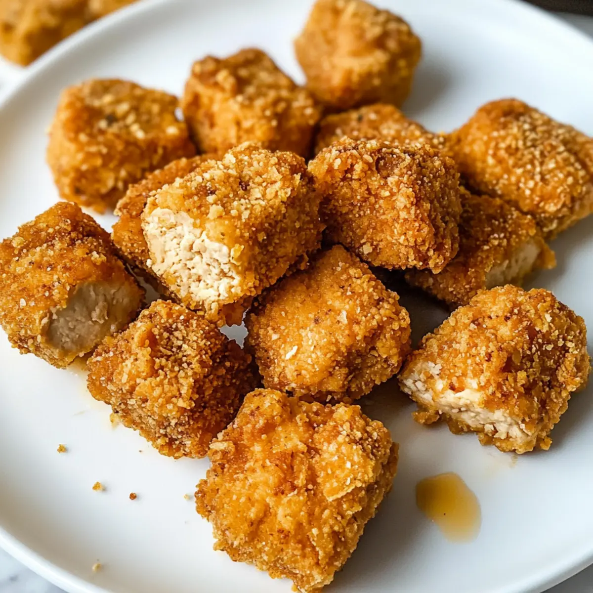 Knusprige Textur: Der perfekte Biss in diese Tofu-Nuggets sorgt für einen wahren Genussmoment, der an traditionelle frittierte Hähnchen erinnert.