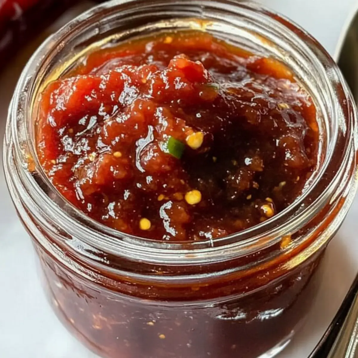 - Mildere Variante: Ersetze die langen roten Chilis durch milde Paprika oder Jalapeños für eine weniger scharfe Marmelade.