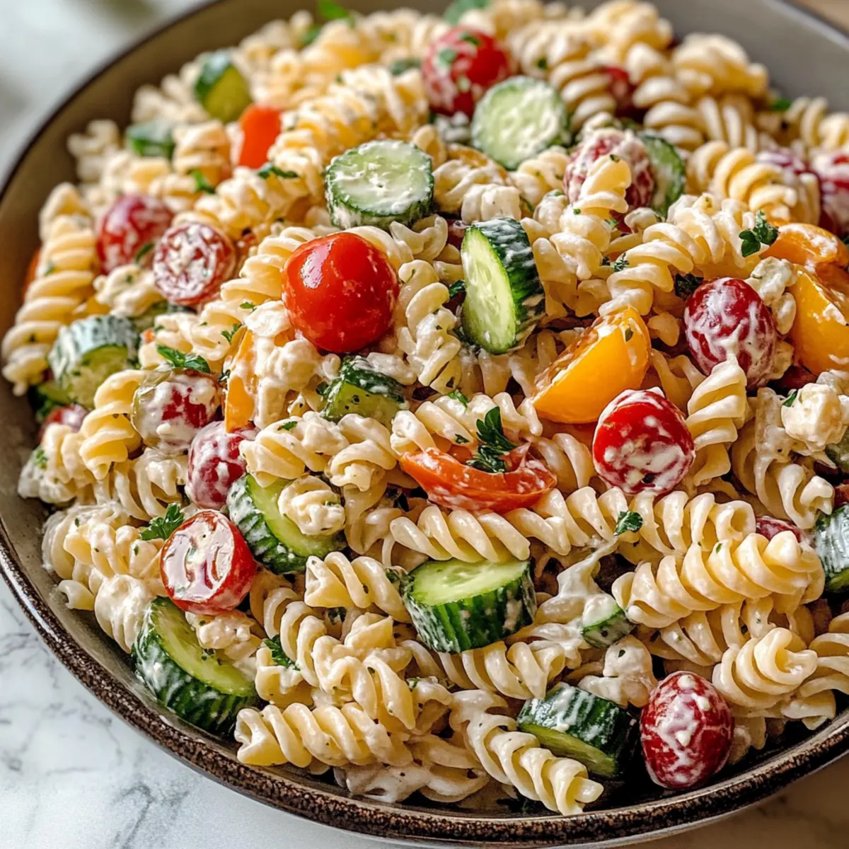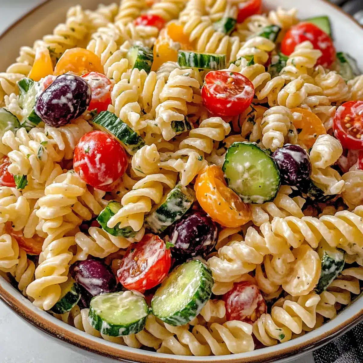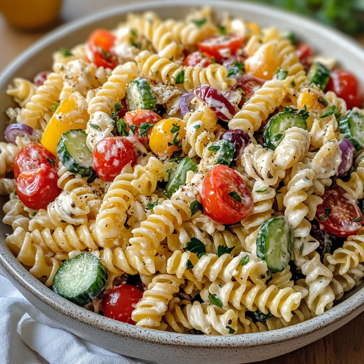 Weihnachtsnudelsalat mit buntem Gemüse genießen