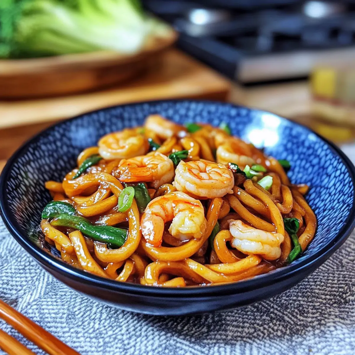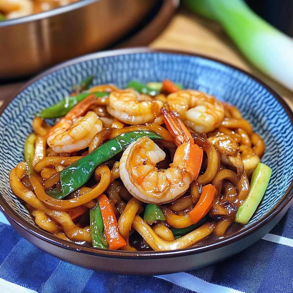 Schnelle Yaki Udon mit Garnelen für jeden Abend