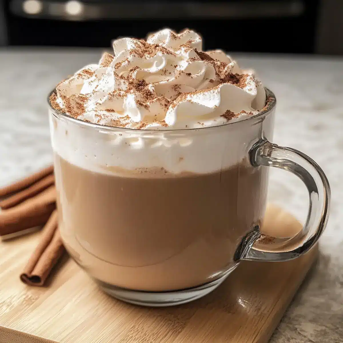 - Garnierung: Füge optional Schlagsahne, gemahlenen Zimt und eine Zimtstange hinzu.