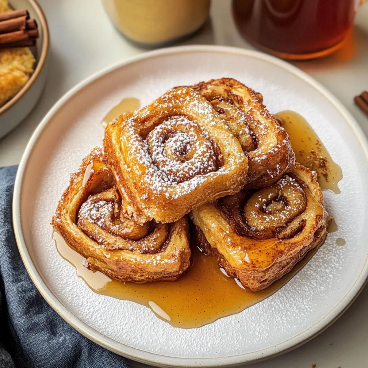 Wiederaufwärmen: Um die Zimtschnecken French Toast richtig aufzuwärmen, verwenden Sie eine Pfanne bei mittlerer Hitze mit etwas Butter. Dies macht sie wieder schön knusprig und lecker, anstatt sie in der Mikrowelle zu erwärmen, was die Textur beeinträchtigen kann.