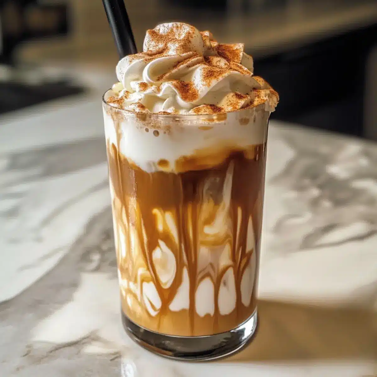 Optional kannst du nun einen großzügigen Klecks Schlagsahne auf die Oberfläche setzen und mit einer Prise gemahlenem Zimt bestreuen. Dies verleiht deinem Zimtschnecken-Latte nicht nur eine ansprechende Optik, sondern erhöht auch den köstlichen Geschmack. Serviere deinen Latte sofort mit einem Strohhalm oder einem Zimtstock.
