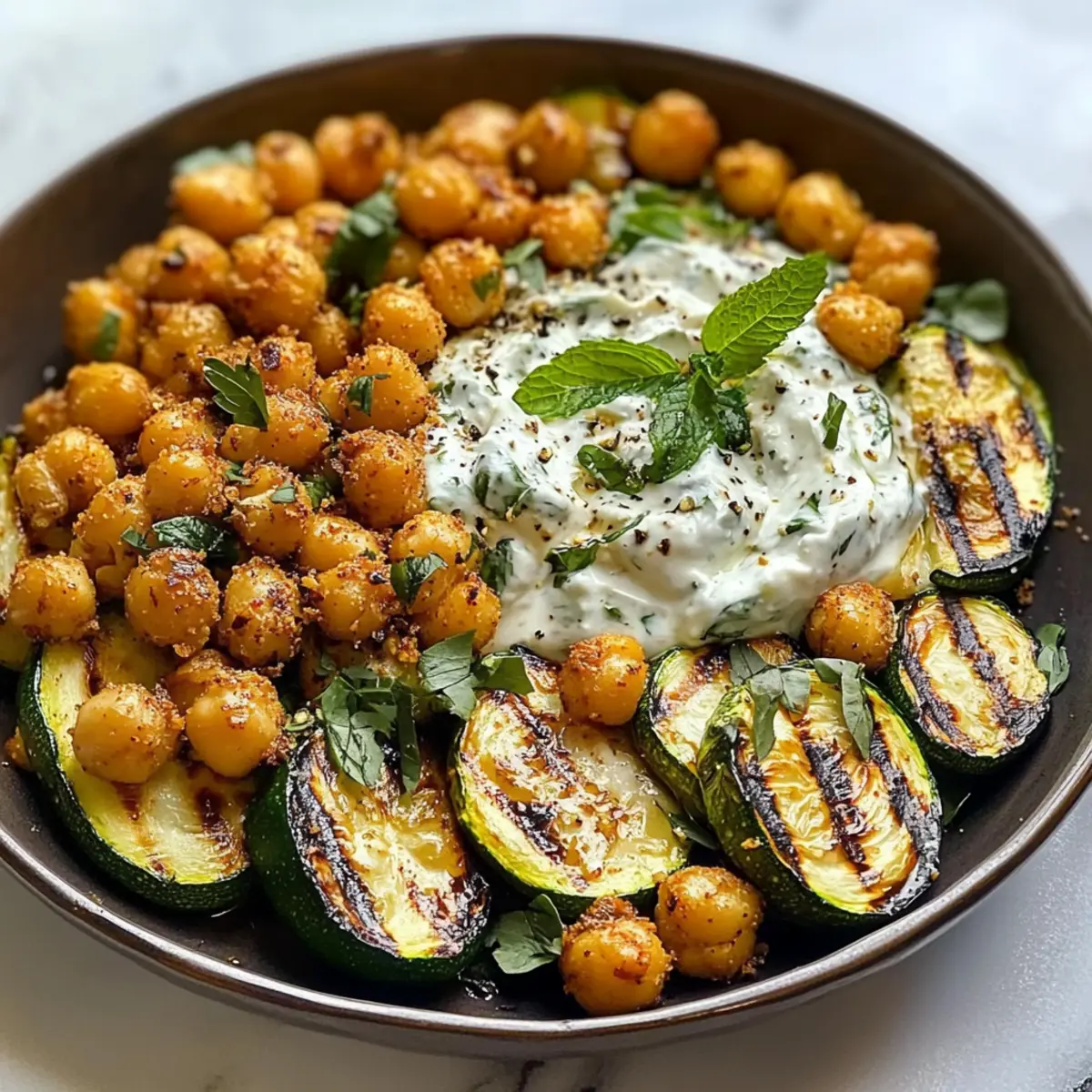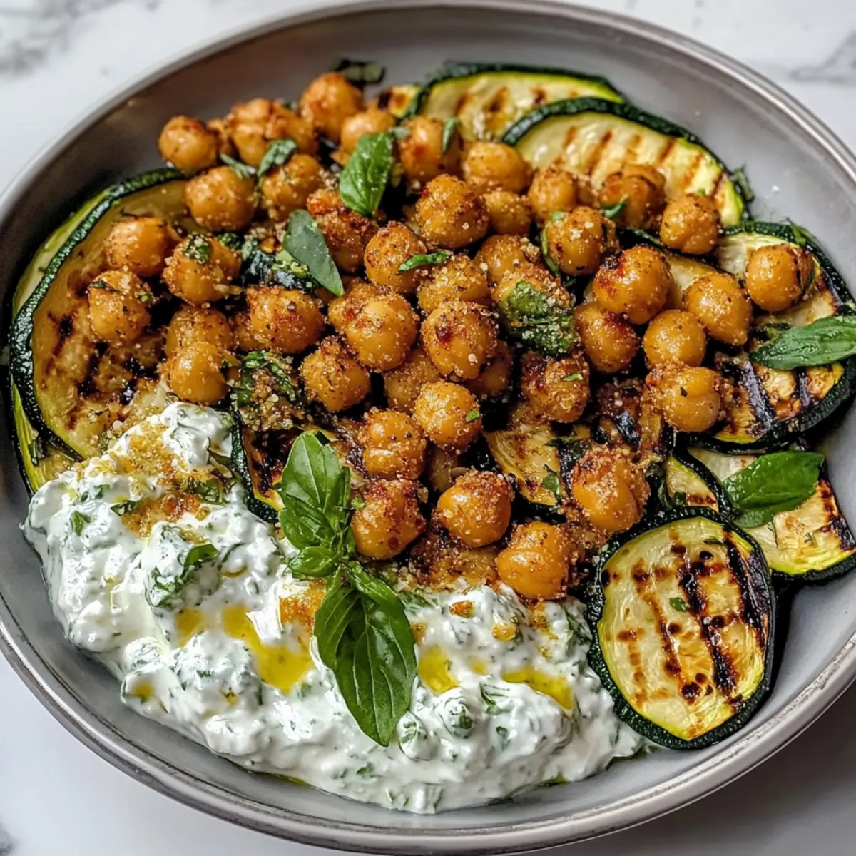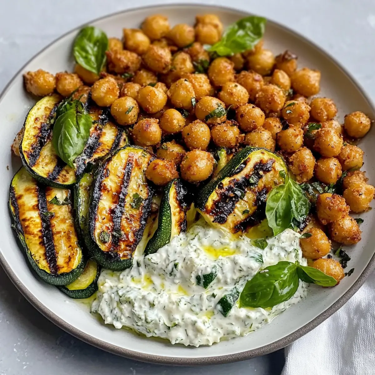 Zitronen gegrillte Zucchini mit knusprigen Kichererbsen